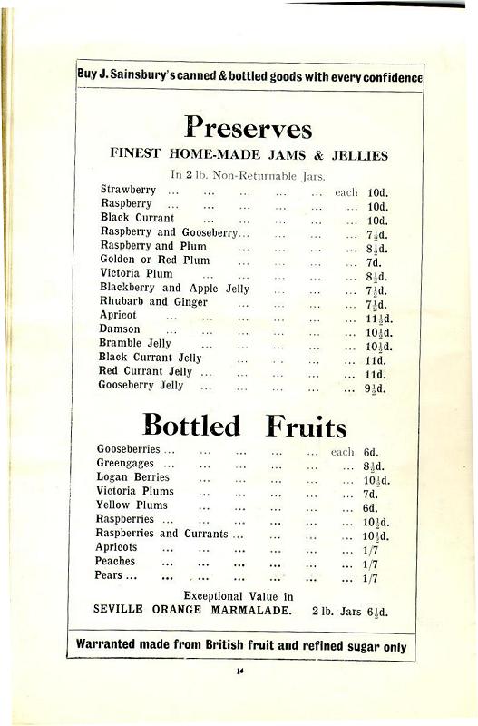 This later price list was issued to all Sainsbury's customers to interest them in purchasing items from the range. Please click on the images or description to see a larger version.