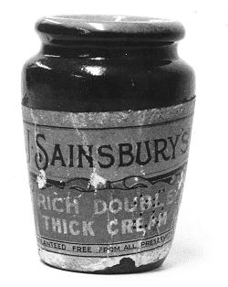 1911 price: 5.5d 2001 price: 39p Cream has lost much of its 1911 status as a premium product, partly because its high fat content has lead many people to select ‘healthier’ alternatives such as yogurt and fromage frais. Its relative cheapness today owes much to the fact that cream is now a by-product of the production of reduced-fat milks. In 1911, skimmed milk was regarded as an inferior product for which there was little market: today it is popular as a reduced fat alternative to whole milk. The price comparison given here understates the relative fall in the price of cream, because the pottery jug in which it was sold was smaller than today’s 142ml tub. |